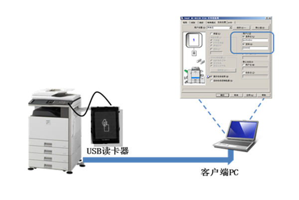 使用复合机需要刷卡认证,减少滥用复合机的情况,减少纸张浪费。